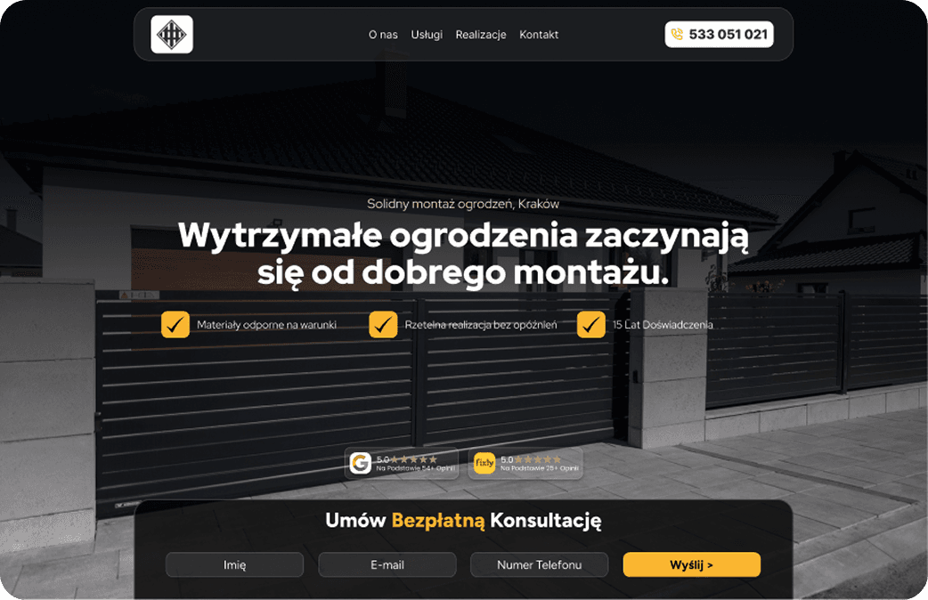 Tworzymy strony, które rzetelnie reprezentują firmę, zwiększają jej widoczność w obszarze działania i realnie wspierają pozyskiwanie klientów — wszystko w przystępnej cenie.